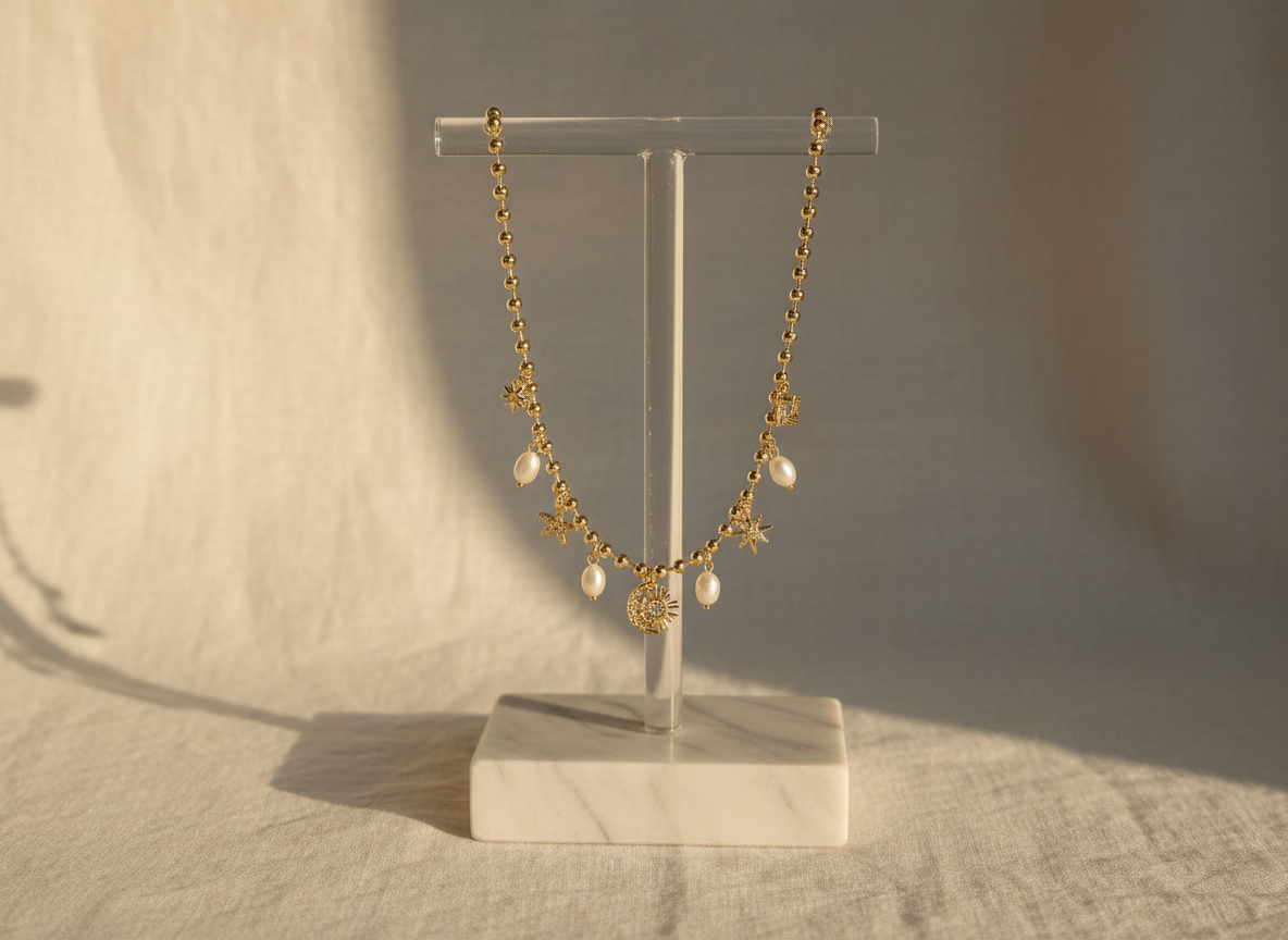 Descubre nuestra exclusiva colección de primavera con collares dorados artesanales, adornados con perlas, corazones y medallones únicos.
